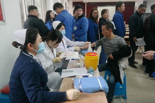 近日,公司黨委組織職工開展了“無償獻血、拯救生命”獻血活動。共有來自生產(chǎn)一線、科室管理職工,以及外協(xié)施工隊作業(yè)人員近100人自愿參加了獻血。鎮(zhèn)江市中心血站的醫(yī)務工作人員到企業(yè)現(xiàn)場進行采血。 |