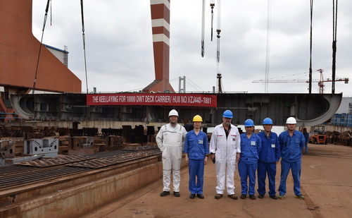 2019年5月18日下午,我公司為德國船東批量建造的10000DWT電力推進(jìn)甲板運(yùn)輸船首制船上船臺(tái),該船入挪威船級社。 |