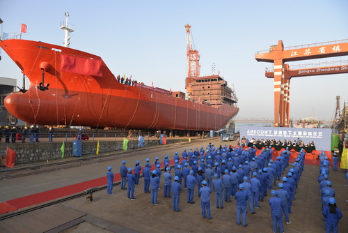 【下水】我公司建造的4900噸硫磺船命名下水