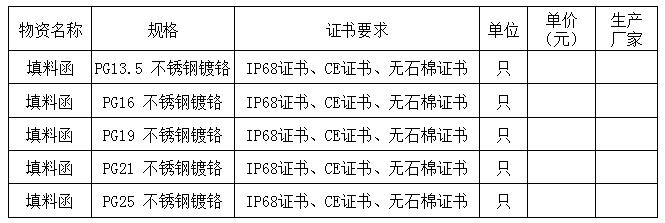 【信息】電纜填料函采購 因船舶建造需要,本公司需常年采購電纜填料函(具體規(guī)格見下列附表)。交貨地點(diǎn):江蘇省鎮(zhèn)江市京江路8號(hào),江蘇省鎮(zhèn)江船廠(集團(tuán))有限公司倉庫。
